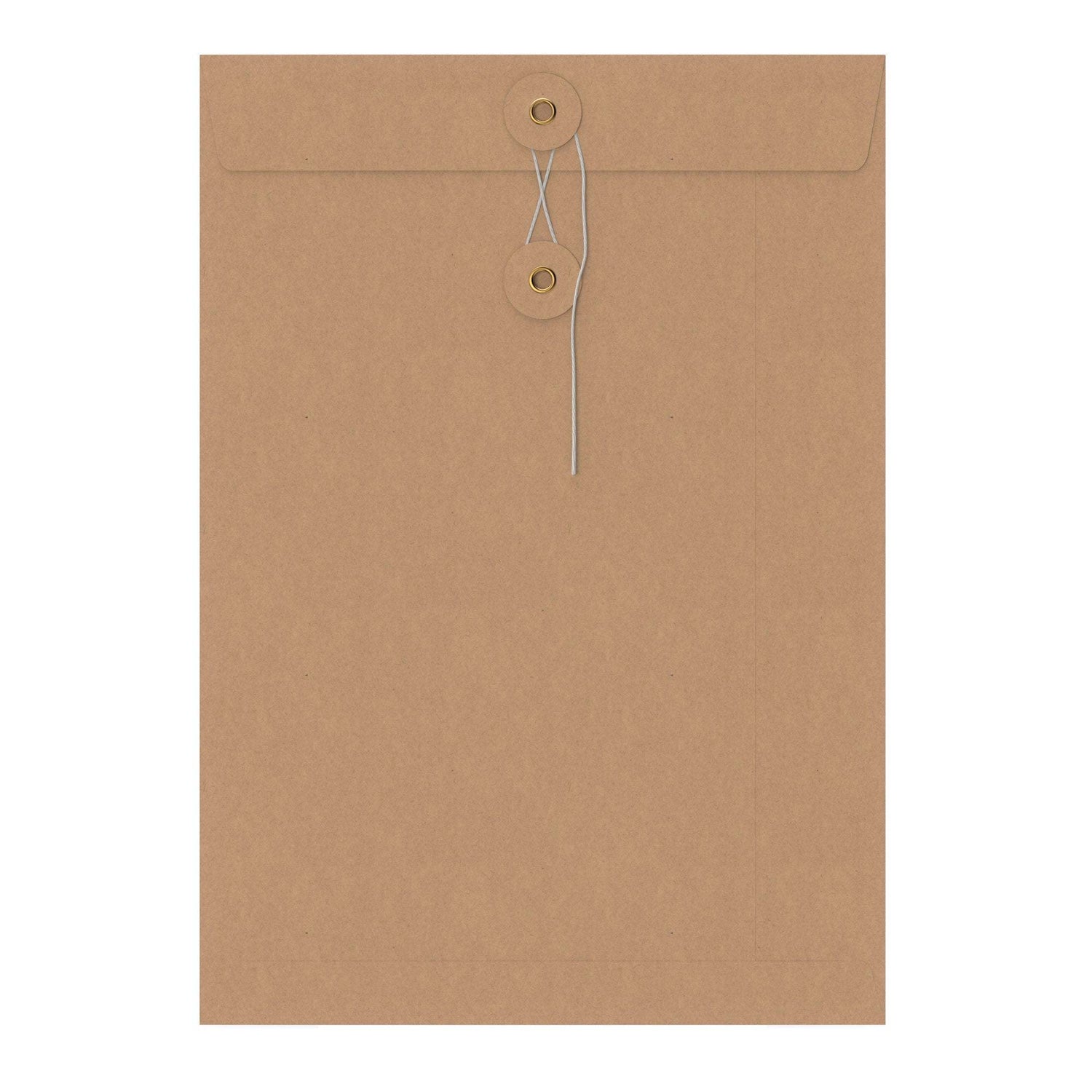 Elegant string and washer envelopes with a full transparent window.